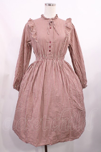 Fi.n.t / スタンドカラーストライプワンピース Free Bordeaux H-25-09-08-1014-CA-OP-NS-ZH