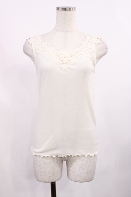 axes femme / お花モチーフリブタンク M 生成り H-25-09-08-1021-AX-TO-NS-ZH