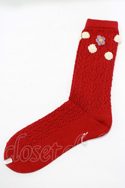 PINK HOUSE / フラワーモチーフソックス レッド H-25-09-10-063-LO-ZA-NS-ZH