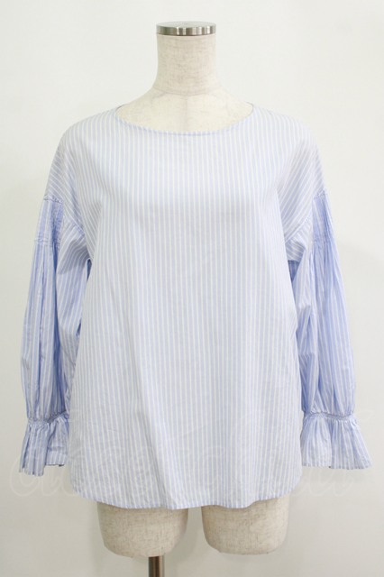INGEBORG / シャーリングスリーブゆったりストライプブラウス Free サックス/ホワイト H-25-09-10-024-LO-BL-NS-ZH