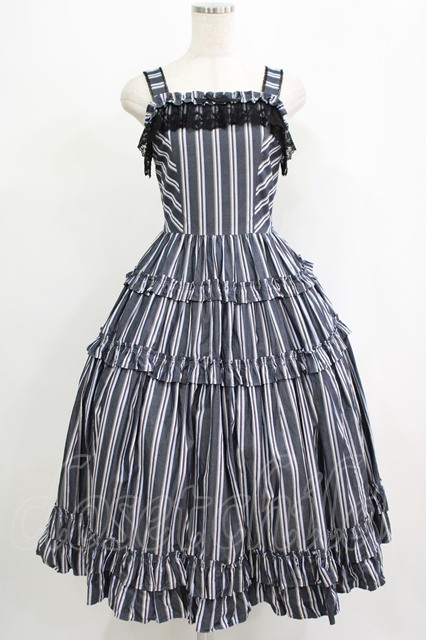 Innocent World / オリビアストライプジャンパースカート M112cm丈 ブラック/ネイビー H-25-09-10-006-IW-OP-NS-ZH