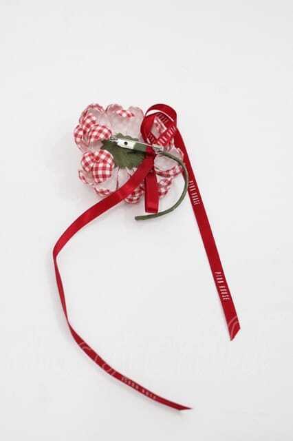 PINK HOUSE / ギンガムチェック雛菊コサージュ 赤X白チェック I-25-09-02-103-LO-AC-HD-ZI