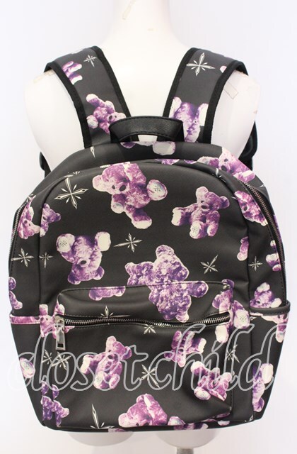TRAVAS TOKYO / 総柄プリントバックパック ブラックxパープル O-25-09-03-026-PU-BG-YM-ZT0916A