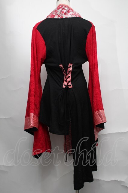 Qutie Frash / アシメ着物カーデ 赤 S-25-09-02-055-QU-JA-HR-ZS
