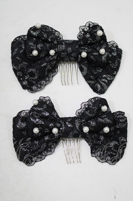 metamorphose / ラメ総レースパール付リボンコーム ブラック H-25-09-11-057-ME-AC-NS-ZH [戻る]