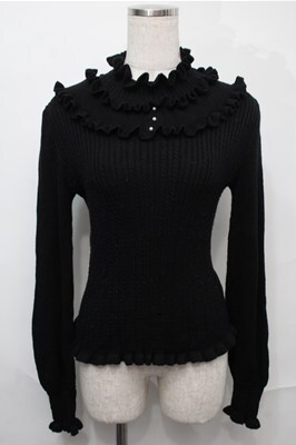 axes femme / フリルテレコニットソー 黒 S-25-09-03-023-AX-TO-HR-ZS
