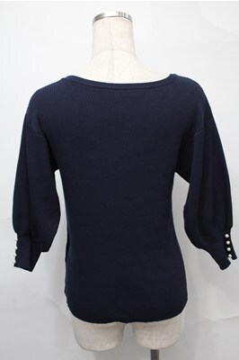 an another angelus / 袖口パール釦Vネックニットプルオーバー 紺 S-25-09-03-024-CA-TO-HR-ZS