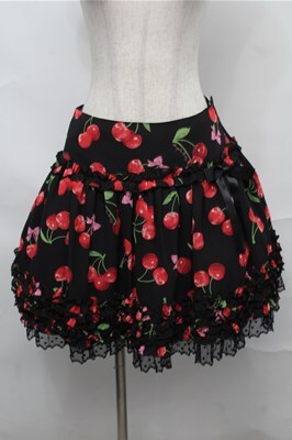 Angelic Pretty / ドレンチェリーフリルスカート 黒 S-25-09-03-062-AP-SK-AS-ZS