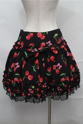 Angelic Pretty / ドレンチェリーフリルスカート 黒 S-25-09-03-062-AP-SK-AS-ZS