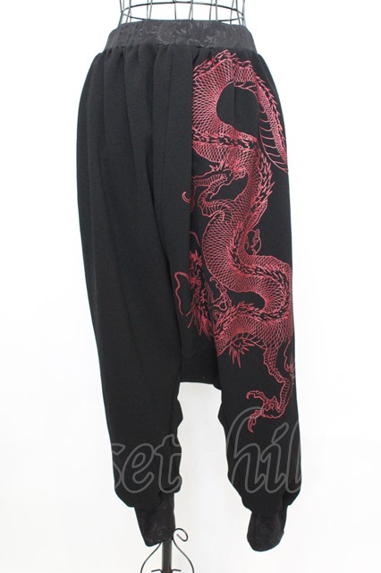 Qutie Frash / チャイナボタンサルエルパンツ ブラック×レッド O-25-09-04-1002-QU-PA-OW-ZT1020