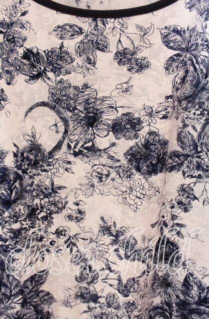【SALE】INGEBORG / ハンドドローローズジャガードカットソー 4(11号) オフ×ブルー O-25-09-04-112-LO-TO-IG-ZT011