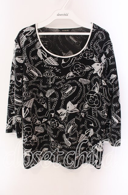 INGEBORG / シグネイチャー総柄カットソー 11 クロ O-25-09-04-083-LO-TO-IG-ZT237
