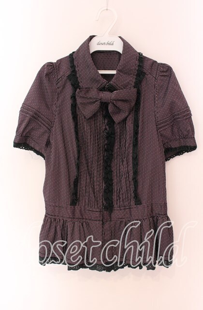 ALGONQUINS / ドットストライプ半袖ブラウス ピンク×ブラック O-25-09-04-053-AL-BL-IG-OS
