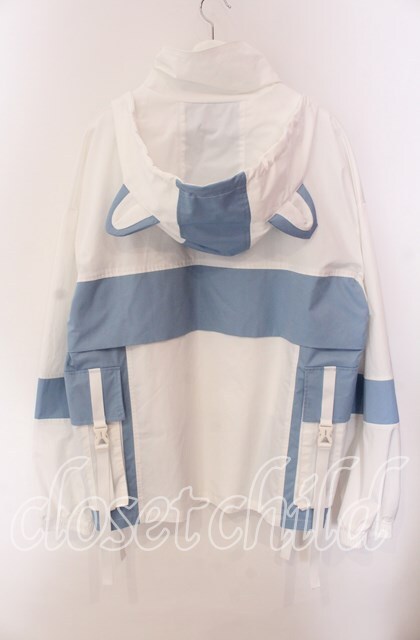 ililil / ぬたコラボ切り替えデザイン猫耳アノラックパーカー ブルーxホワイト O-25-09-04-079-PU-TO-YM-OS