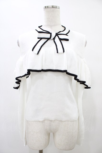 evelyn / 肩あきフリルニット Free オフ/ブラック H-25-09-09-1058-LO-TO-NS-ZH
