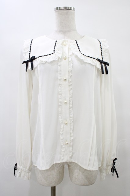 Ank Rouge / スクエアカラーハシゴリボンブラウス M オフ/ブラック H-25-09-09-1042-CA-BL-NS-ZH