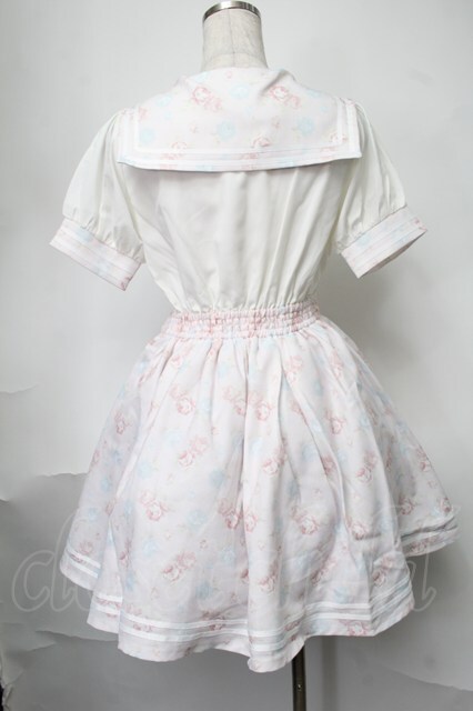 LIZ LISA / ローズプリントセーラーワンピース 白xピンク S-25-08-11-035-LO-OP-AS-ZS