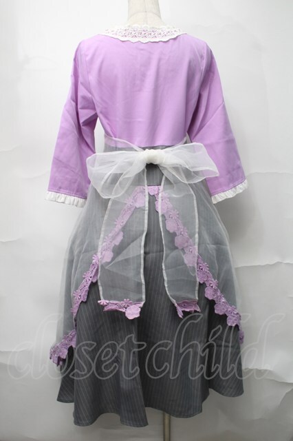 Favorite / ストライプ切替チュールワンピース パープルxグレー S-25-09-04-032-LO-OP-HR-ZS