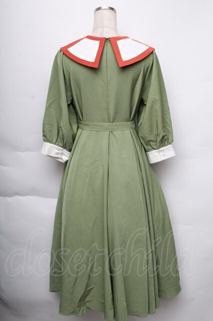 Favorite / ハサミ風リボンのお裁縫デザインワンピース グリーン S-25-12-01-033-LO-OP-HR-ZT048 [戻る]