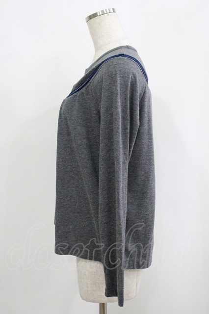 Jane Marple / ベロアラインカットソー M グレー H-25-09-12-030-JM-TO-KB-ZH