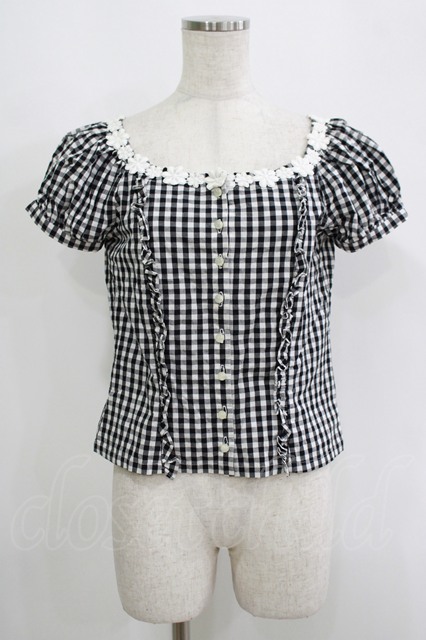 MILK / ギンガムパフブラウス ブラック H-25-09-12-055-ML-BL-KB-ZH
