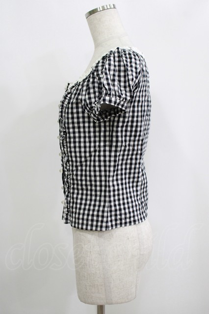 MILK / ギンガムパフブラウス ブラック H-25-09-12-055-ML-BL-KB-ZH