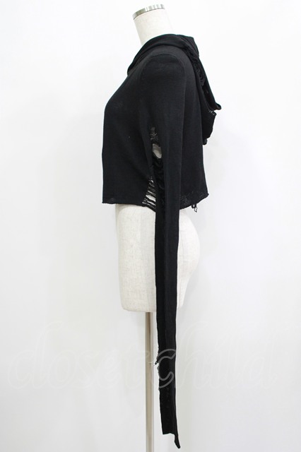 WIDOW / ダメージフードニット XS 黒 H-25-09-12-049-PU-TO-KB-ZH