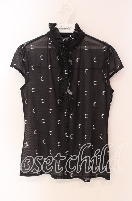 【SALE】KILL STAR / ムーン総柄シアーブラウス S ブラック O-25-09-06-058-SL-BL-OW-ZT259