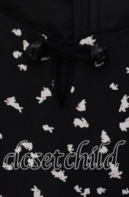 INGEBORG / うさぎ柄ちりめんワンピース M クロ O-25-09-06-033-LO-OP-IG-ZI