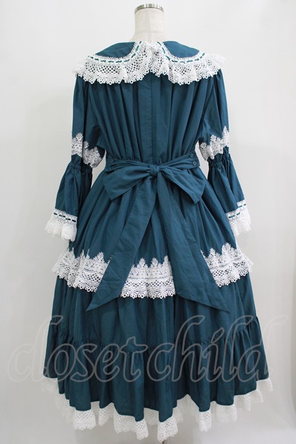 Physical Drop / ノスタルジックプリンセスドレス L ブルーグリーン×オフ白レース H-25-09-13-012-LO-OP-NS-ZH