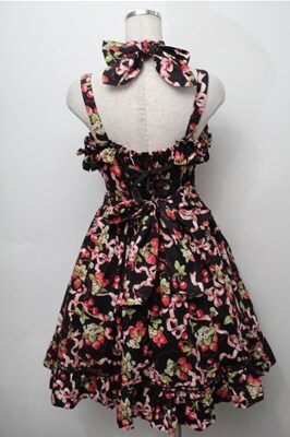 BABY,THE STARS SHINE BRIGHT / いちごとさくらんぼフリルジャンパースカート 黒 S-25-09-06-050-BA-OP-HR-ZT490