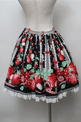 Angelic Pretty / 摘みたていちごエプロン風スカート 黒 S-25-09-06-051-AP-SK-AS-ZT224