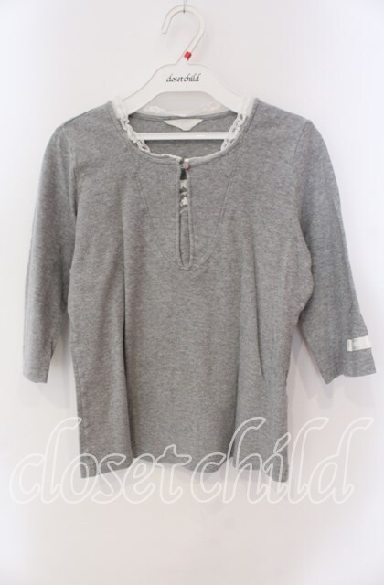【SALE】PINK HOUSE / レース配色5部袖カットソー グレー O-25-09-08-007-LO-TS-IG-ZT078