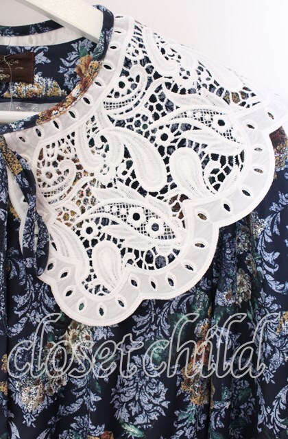 axes femme NOSTALGIE / ローズオーナメント柄ワンピース ネイビー O-25-09-08-020-AX-OP-IG-OS