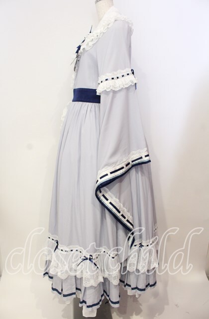 Hoshibako Works / 西行寺幽々子 付け襟付き着物風ワンピース サックス×シロ O-25-09-09-085-LO-OP-OW-OS