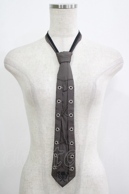Ozz Croce / スカル刺繍チェーンストライプネクタイ 茶系 H-25-09-16-068-OO-ZA-KB-ZH