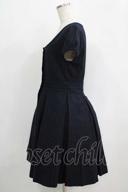Jane Marple / ダブルボタンウールワンピース M ネイビーストライプ H-25-09-16-006-JM-OP-KB-ZH