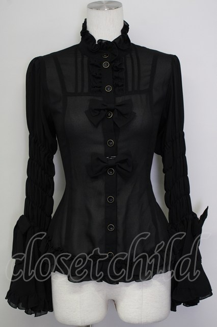 metamorphose / 立ち襟シフォンラッパ袖ブラウス 黒 T-25-09-10-008-ME-BL-SA-ZI