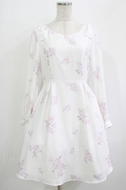 LODISPOTTO / 肩リボンオリジナル花柄ワンピース M オフ H-25-09-18-026-LO-OP-NS-ZH