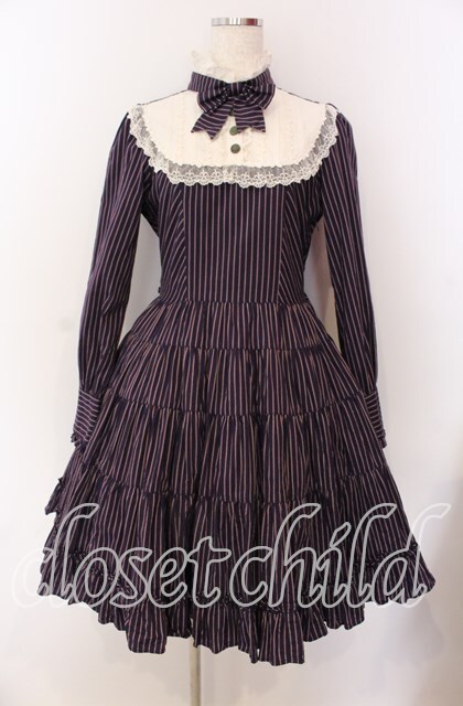 Innocent World / スタンドカラーストライプワンピース L ネイビー O-25-09-08-064-IW-OP-IG-OS