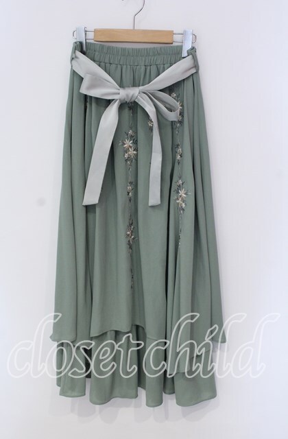 axes femme / フラワー刺繍イレヘムスカート グリーン O-25-09-11-030-AX-SK-IG-OS [戻る]