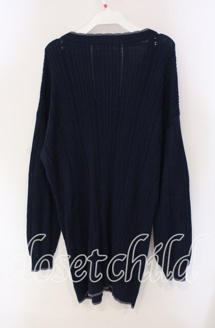 axes femme / 花刺繍ロングニットカーデ ネイビー O-25-09-11-086-AX-TO-IG-OS [戻る]