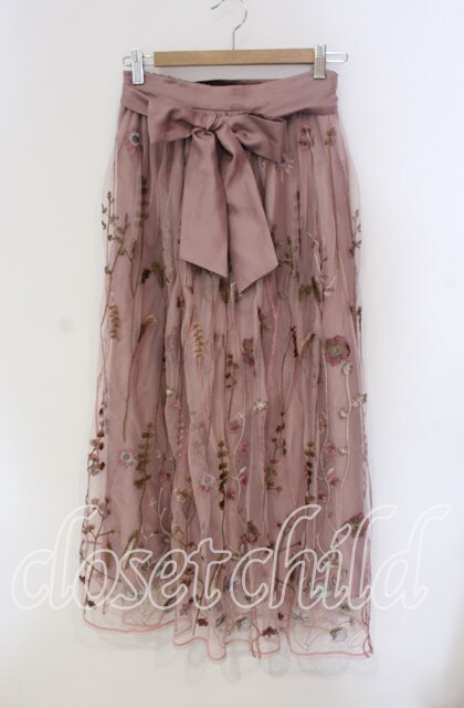 axes femme / ボタニカル刺繍スカート ピンク O-25-09-11-032-AX-SK-IG-OS