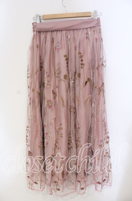 axes femme / ボタニカル刺繍スカート ピンク O-25-09-11-032-AX-SK-IG-OS [戻る]
