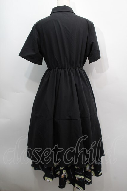 NieR Clothing / ねこのおしゅしプリントワンピース 黒 S-25-09-11-045-PU-OP-HR-ZI