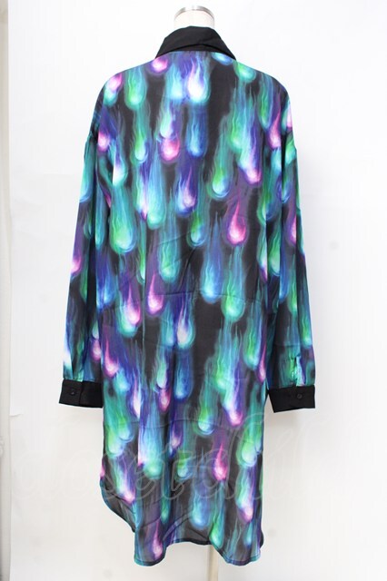 Drug Honey / 幻影鬼炎柄テールカットシャツ 黒 Y-25-09-13-013-PU-BL-SZ-ZY