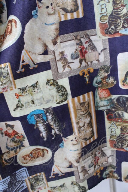 Perla nell' ostrica / ビンテージキャットシャツ ネイビー Y-25-09-13-063-EL-BL-SZ-ZY