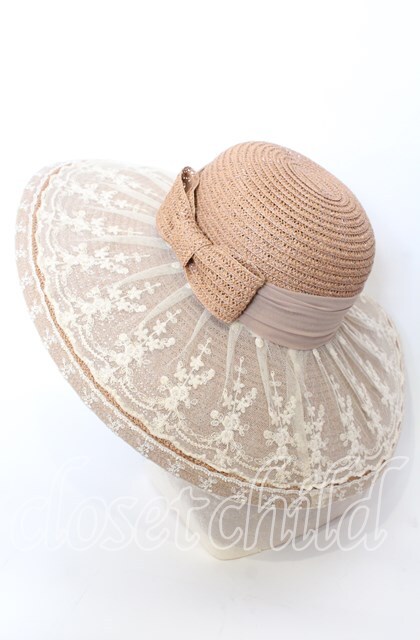 axes femme / つば広レースフラワー帽子 ブラウン O-25-09-12-036-AX-AC-IG-ZT-K004