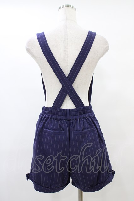 Amavel / サイドリボン付ストライプ柄サスペンダーショートパンツ Free ネイビー H-25-09-18-1045-CA-PA-NS-ZH