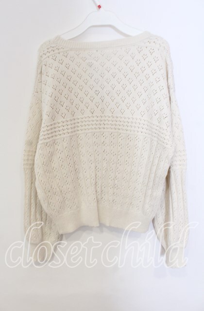 axes femme / 透かし編みニットカーディガン 生成り O-25-09-13-016-AX-TO-IG-OS